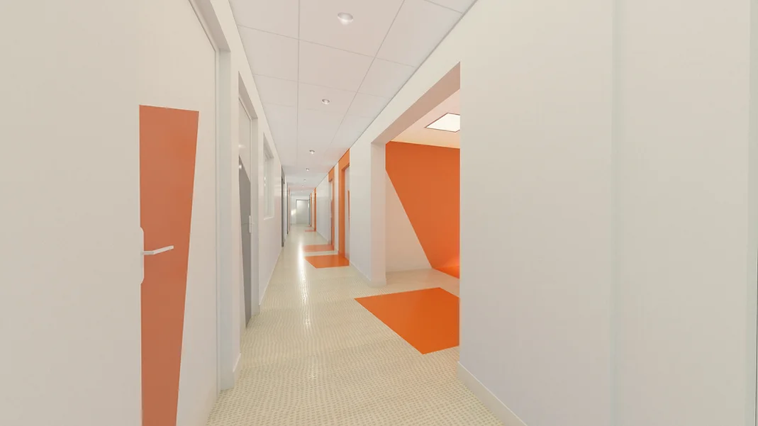 Le projet a pour but la création d’un Centre Médico-Psychologique pour enfants aux niveaux rez-de-jardin et rez-de-chaussée d’un bâtiment existant, avec une extension au Sud-Ouest pour la création d’un ascenseur.