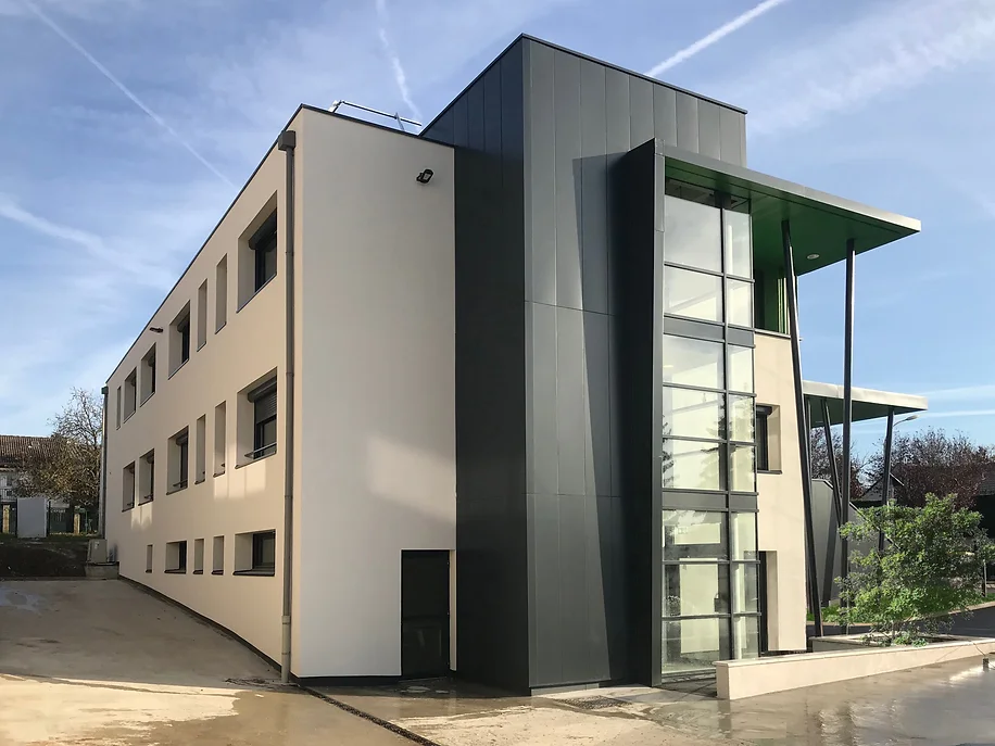 Les façades seront habillées d’un parement en pierre, d’un enduit extérieur ton clair, ou d’un habillage métallique.