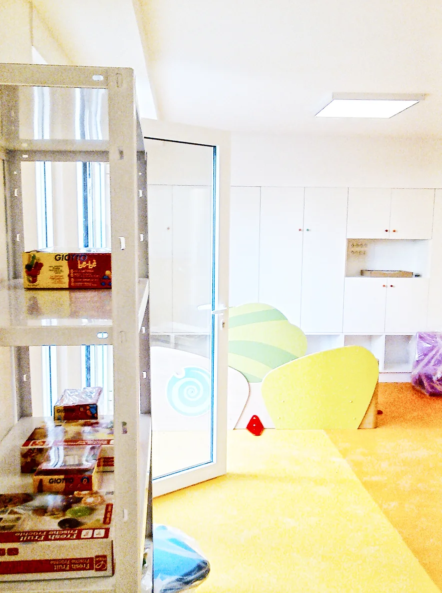 Notre objectif été d’offrir aux enfants un espace de jeu et d’apprentissage lumineux, spatialement ludique et pratique.
