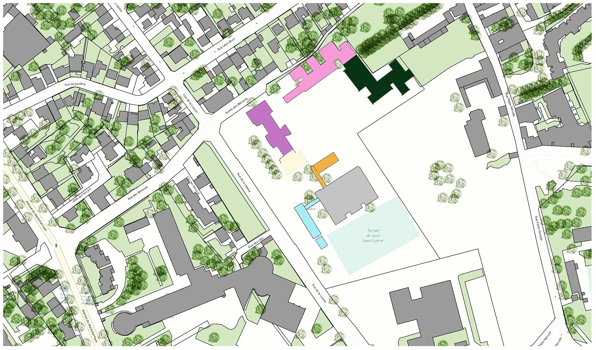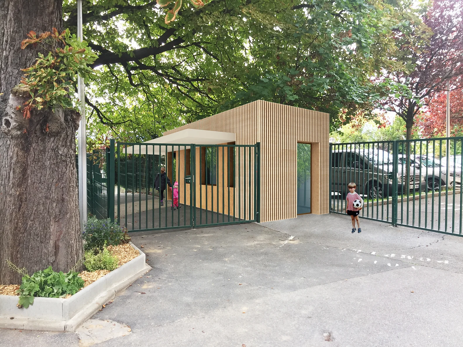 L’office de production, actuellement situé au RDC, est déplacé vers l’entresol avec la création d’une seconde salle à manger dédié aux élevés du collège-lycée. La livraison de l’office reste inchangée au niveau RDC, aménagé pour partie en deux salles à manger pour les primaires et les collèges-lycée ainsi que les espaces de service dédiés à la cuisine.