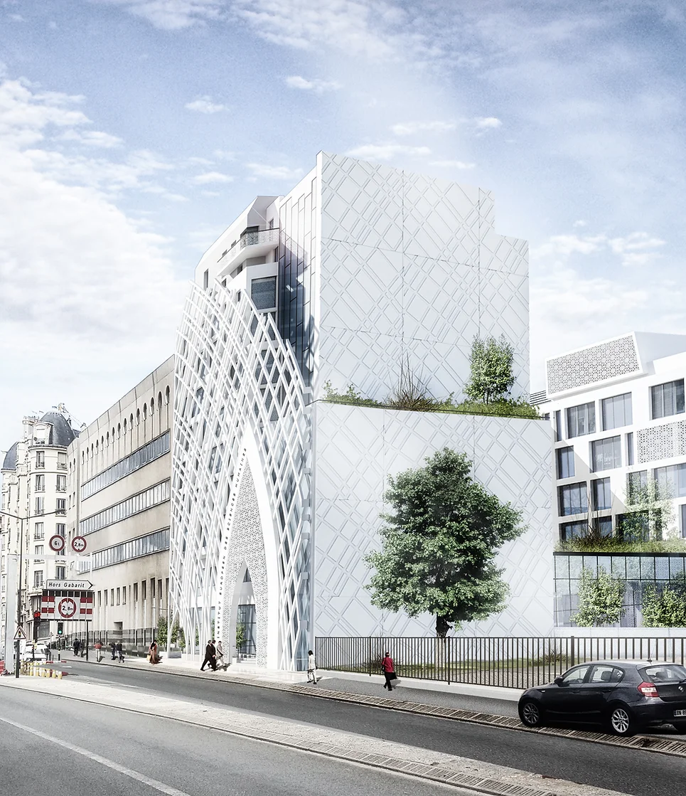 • La Basilique de Saint-Denis : nous avons intégré dans notre composition << l’arc d’ogives », travaillé comme un élément de façade constituant un langage architectural mêlant culture chrétienne et culture musulmane, et correspondant à un véritable trait d’union dans le paysage.