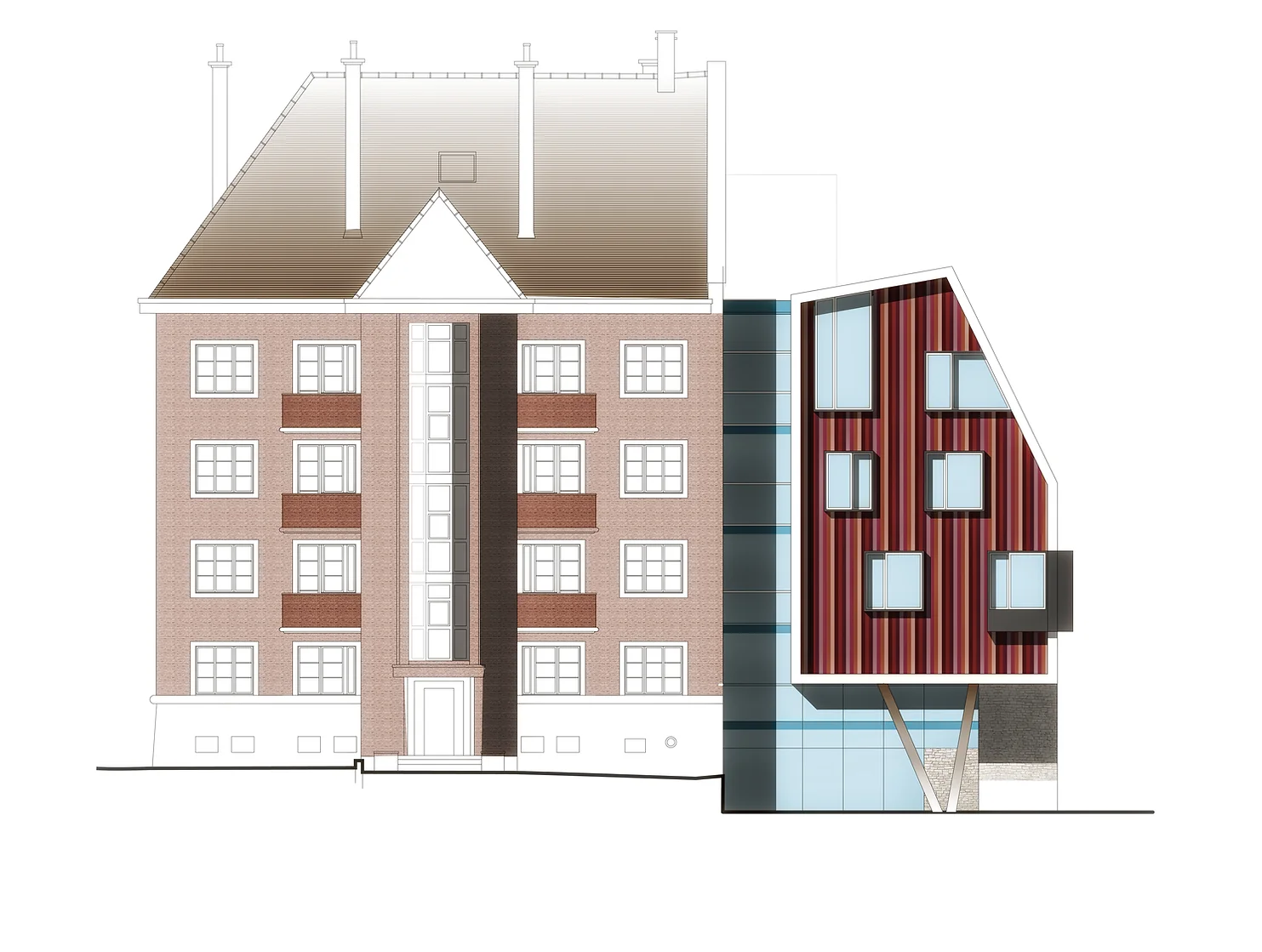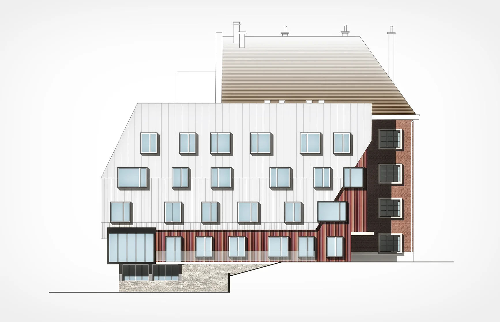 L’enjeu est donc de conjuguer ces deux volumes, l’existant et le future en y instaurent une continuité temporelle sur le jeu de façade et l’aménagement spatiale quant à l’appréciation de ce son confort de vie.